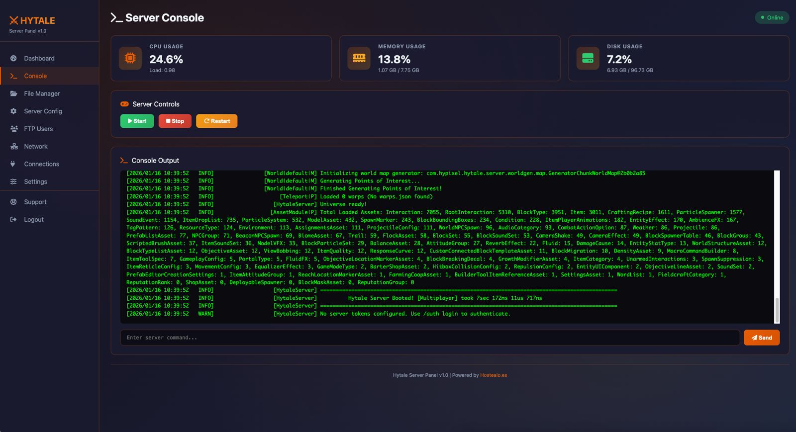 ¡Toma el control total de tu servidor de Hytale! Elige la versión de tu servidor, gestiona usuarios e instala, modifica o elimina complementos, todo desde un solo lugar.